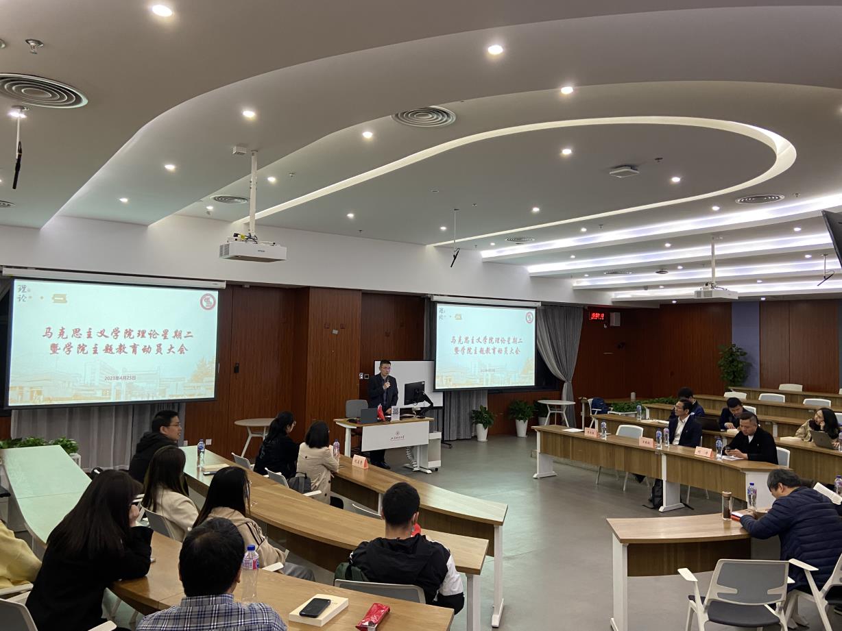 为深入开展学习贯彻习近平新时代中国特色社会主义思想主题教育,4月25日下午,上海财经大学马克思主义学院召开学习贯彻习近平新时代中国特色社会主义思想主题教育动员部署会、院领导班子“学习贯彻习近平新时代中国特色社会主义思想主题教育”读书班开班式。学院领导班子成员出席本次会议。曹东勃书记主持会议并作动员部署,并在读书班上领学《关于在全党大兴调查研究的工作方案》《习近平关于调查研究论述摘编》。读书班特邀请中共嘉善县委党校高级讲师沈洁和上海市陈云纪念馆列编研部副主任刘启芳围绕“大兴调查研究”作辅导报告。学院全体师生党员参加会议。