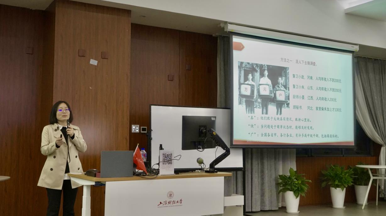 上海市陈云纪念馆列编研部副主任刘启芳以《陈云调查研究的历史经验及现代意义》为题,深刻阐述了要从“实事求是的唯物论观点、辩证法的发展观和群众路线”三方面指导开展调查研究,并以生动活泼的语言教授大家,坚持调查研究的意义和方法论。她认为,坚持调查研究一是要坚持问题导向、有的放矢,二是要深入实际、深入基层、深入群众,三是要制度化经常化。