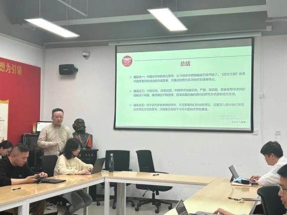 张孟雯老师围绕数字劳动问题,报告了自己的近期研究与思考。梁捷老师分享了自己将西方经济思想史、中国经济思想史与马克思主义经济思想史融合研究的心得体会。周杰老师认为,对马克思主义的研究不应该只是时代特征探讨,最重要的要用时代语言去阐释。王岩老师结合自身近期对夜间经济的社会调研,分享了对“以人民为中心的发展思想”的研究体会。