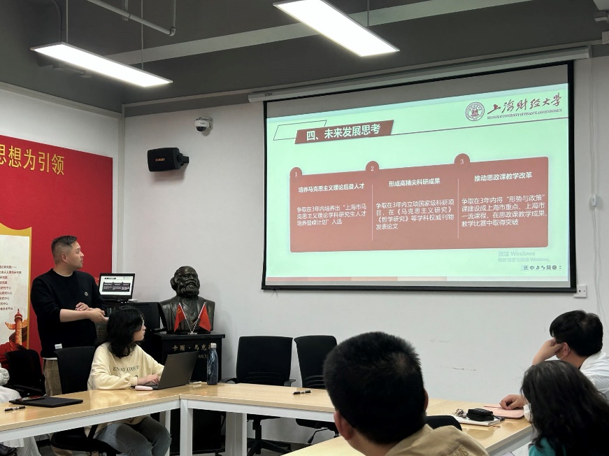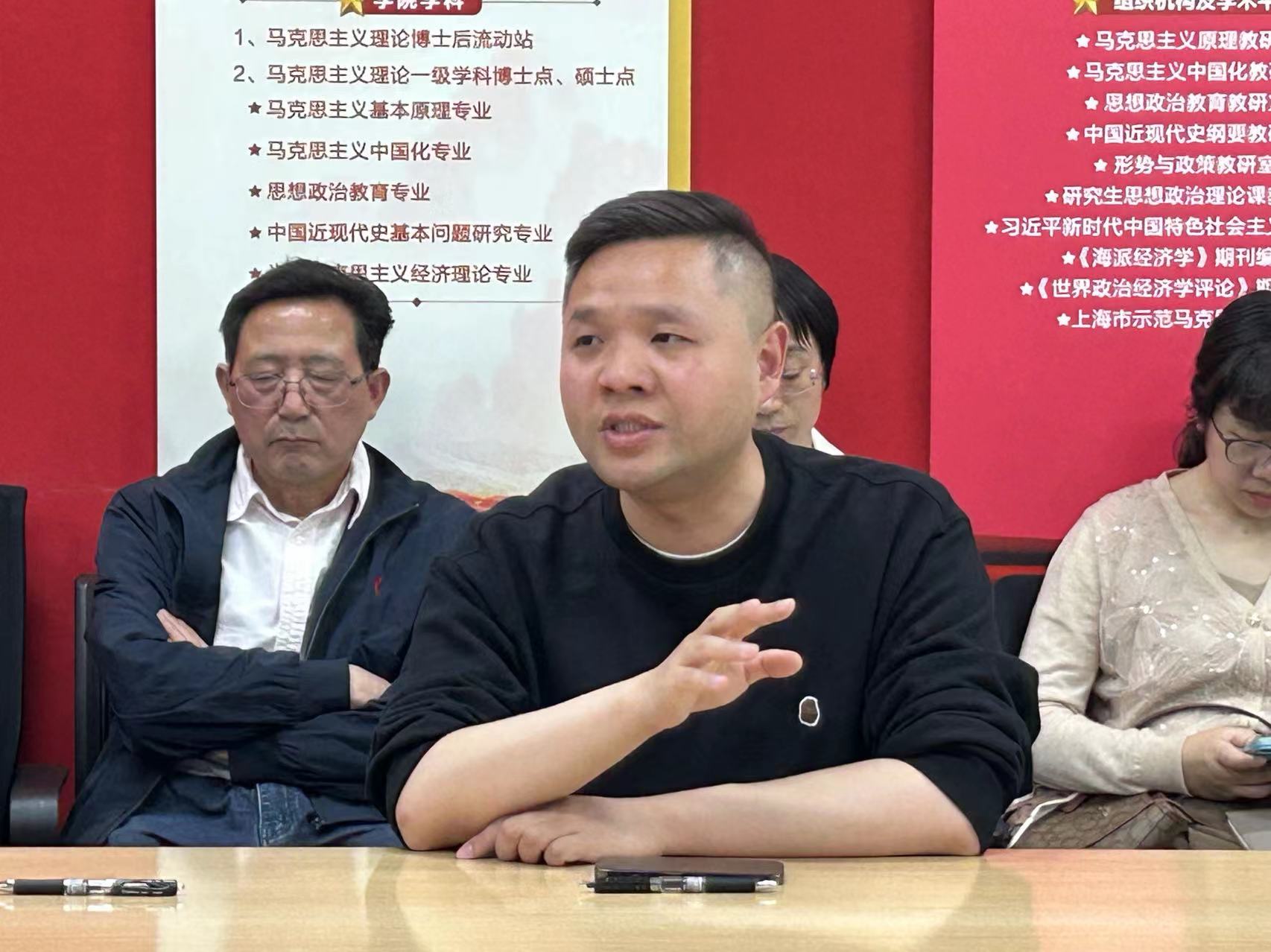 刘洋副院长认为完成立德树人的根本任务应该从思政课、专业课和通识课同向发力,思政教改、课程思政、课程建设协同育人,他以培养“政治强、情怀深、思维新、视野广”的马克思主义理论人才为目标,学习总书记的辩证思维和战略思维,创造性地推动马克思主义的薪火相传。