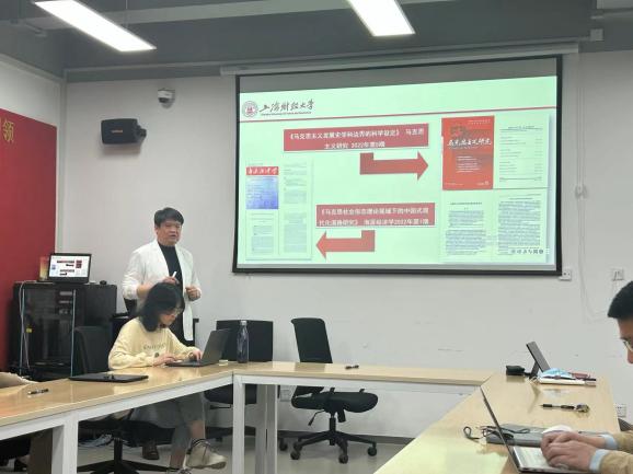 5月9日下午,根据主题教育工作部署,马克思主义学院学习贯彻习近平新时代中国特色社会主义思想主题教育读书班在科研实验大楼1326会议室聚焦“习近平新时代中国特色社会主义思想的世界观和方法论”进行集中学习研讨,学院党委书记曹东勃、副院长丁晓钦、副院长刘洋出席会议,全院教师参加会议,青年教师代表刘洋、梁捷、王岩、张孟雯、周杰进行交流发言。