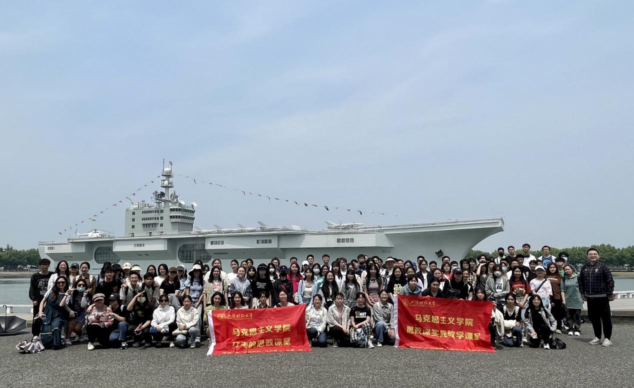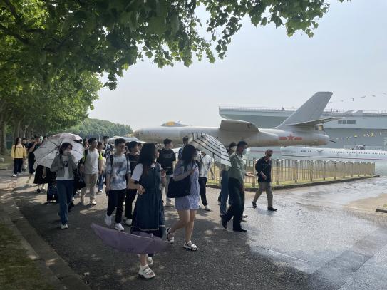 下午2时,同学们来到东方绿舟国防园参观学习。东方绿舟国防园不仅是全国首屈一指的青年校外教育营地,也是落实科技兴国战略和开展爱国主义军事教育的重要场所。同学们在专业教官的引导下游览红军足迹园,感怀红军战士们坚定的共产主义信仰。而后走过战斗机长廊,前往“东方绿舟”航空母舰模型参观。
