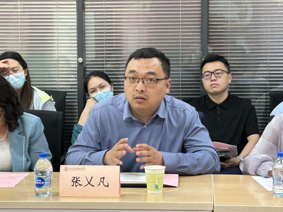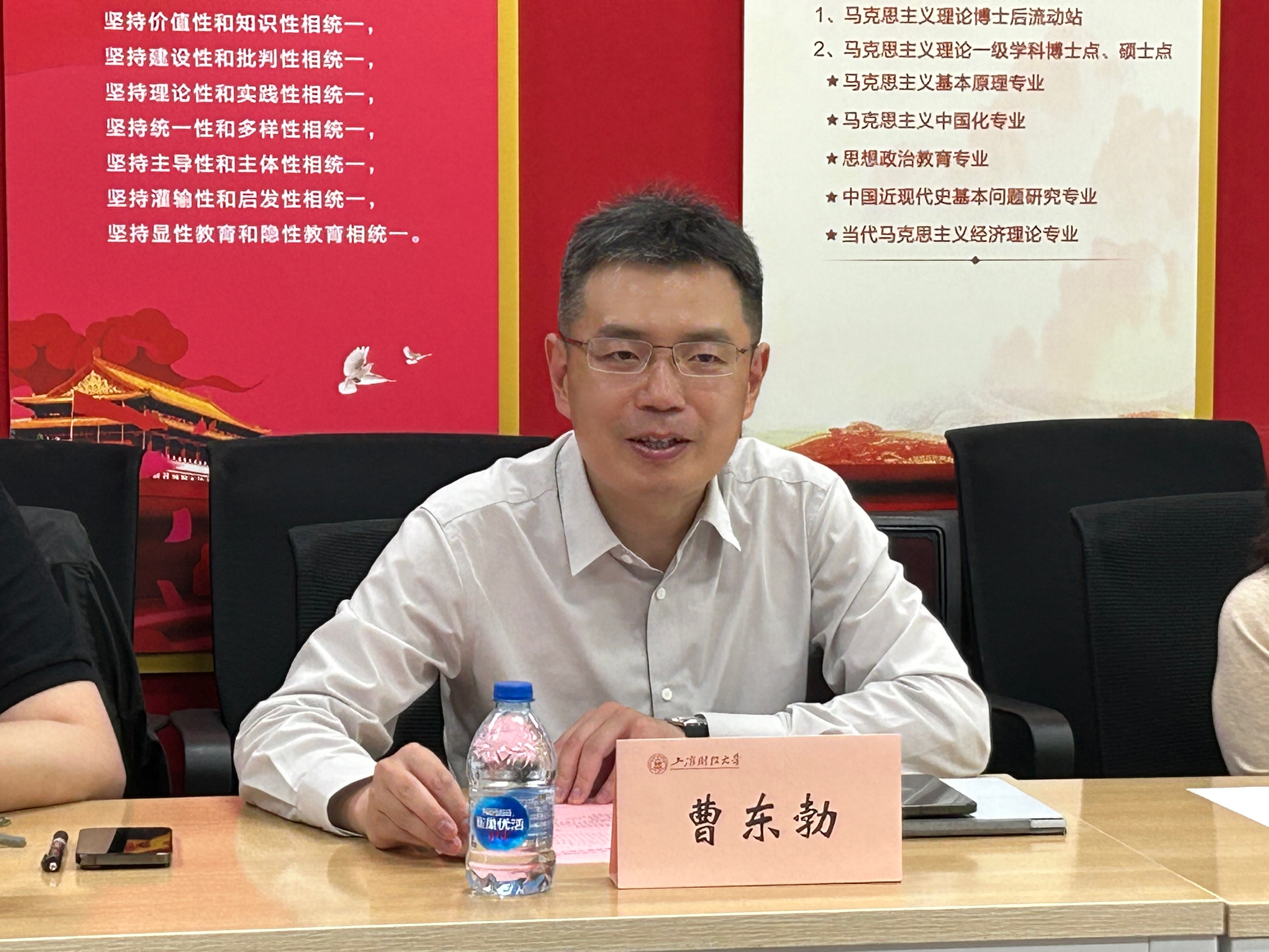 5月17日下午,根据主题教育工作部署,马克思主义学院领导班子主题教育读书班在科研大楼1326会议室召开,会议聚焦“习近平总书记关于学习四史的重要论述”进行专题学习。读书班由马克思主义学院党委书记曹东勃主持,副院长刘洋领学,学习会特邀上海对外经贸大学马克思主义学院院长秦淑娟、华东师范大学马克思主义学院教授闫方洁、东华大学马克思主义学院院长助理张乂凡出席,马克思主义学院领导班子成员、马克思主义学院党员教师代表等参加会议。