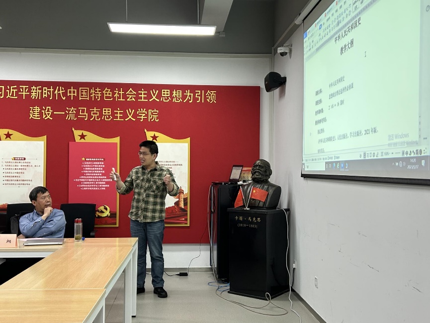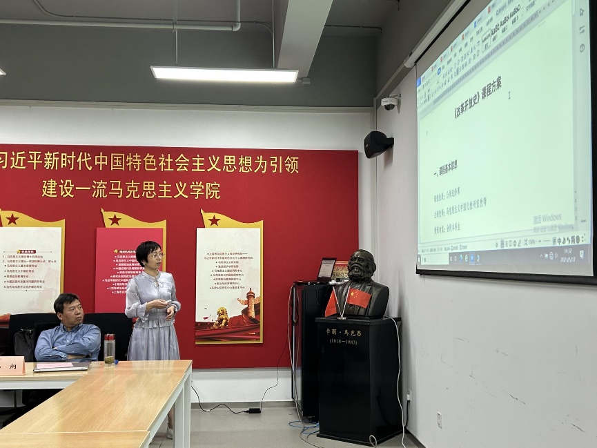 随后,马克思主义基本原理教研室张桂芳老师、中国近现代史纲要教研室韩炯老师、习近平中国特色社会主义思想概论教研室姜国敏老师、马克思主义中国化教研室任瑞敏老师分别汇报社会主义发展史、中国共产党党史、中华人民共和国史、改革开放史四门课程的大纲、规划及进展情况。