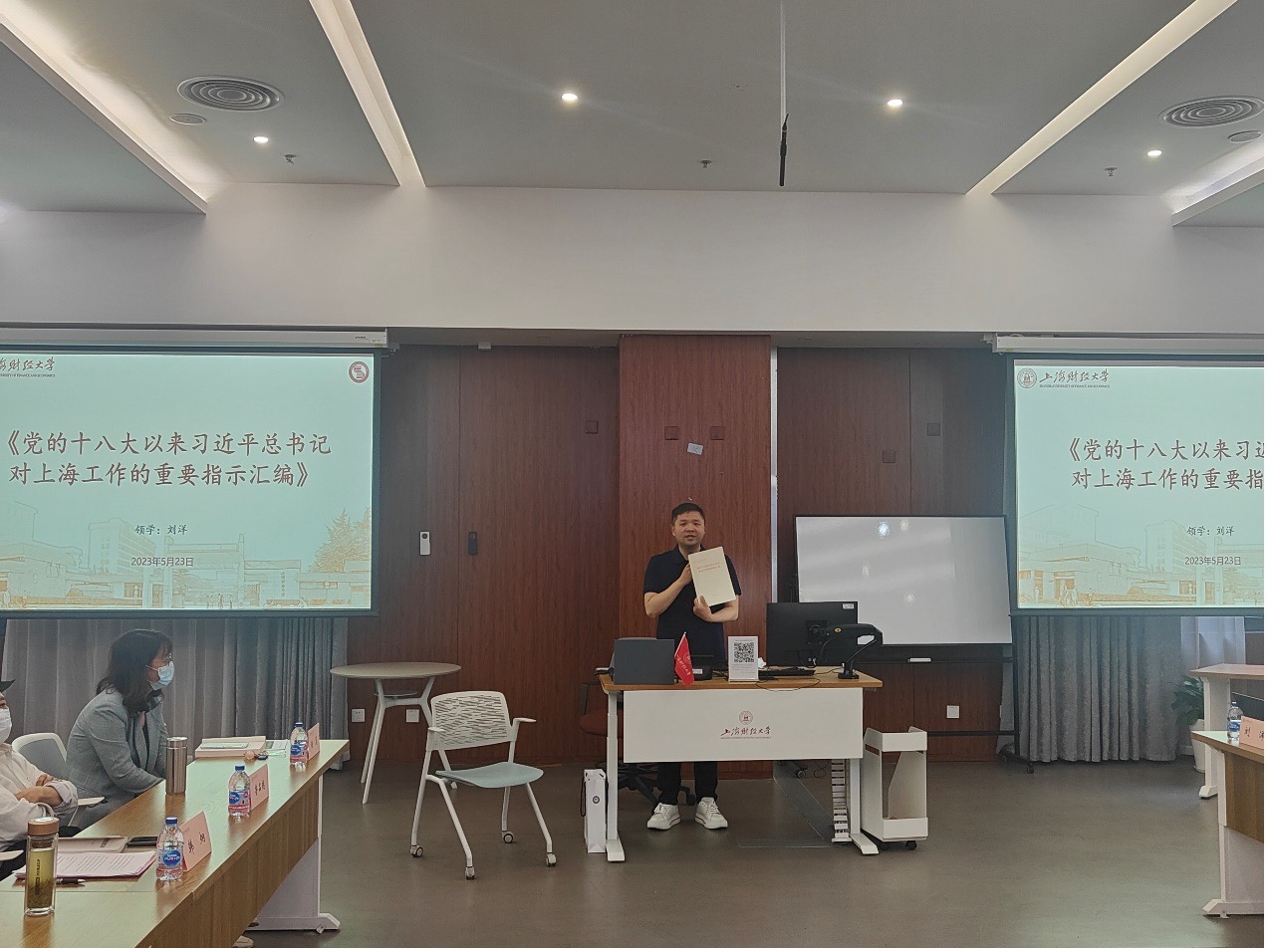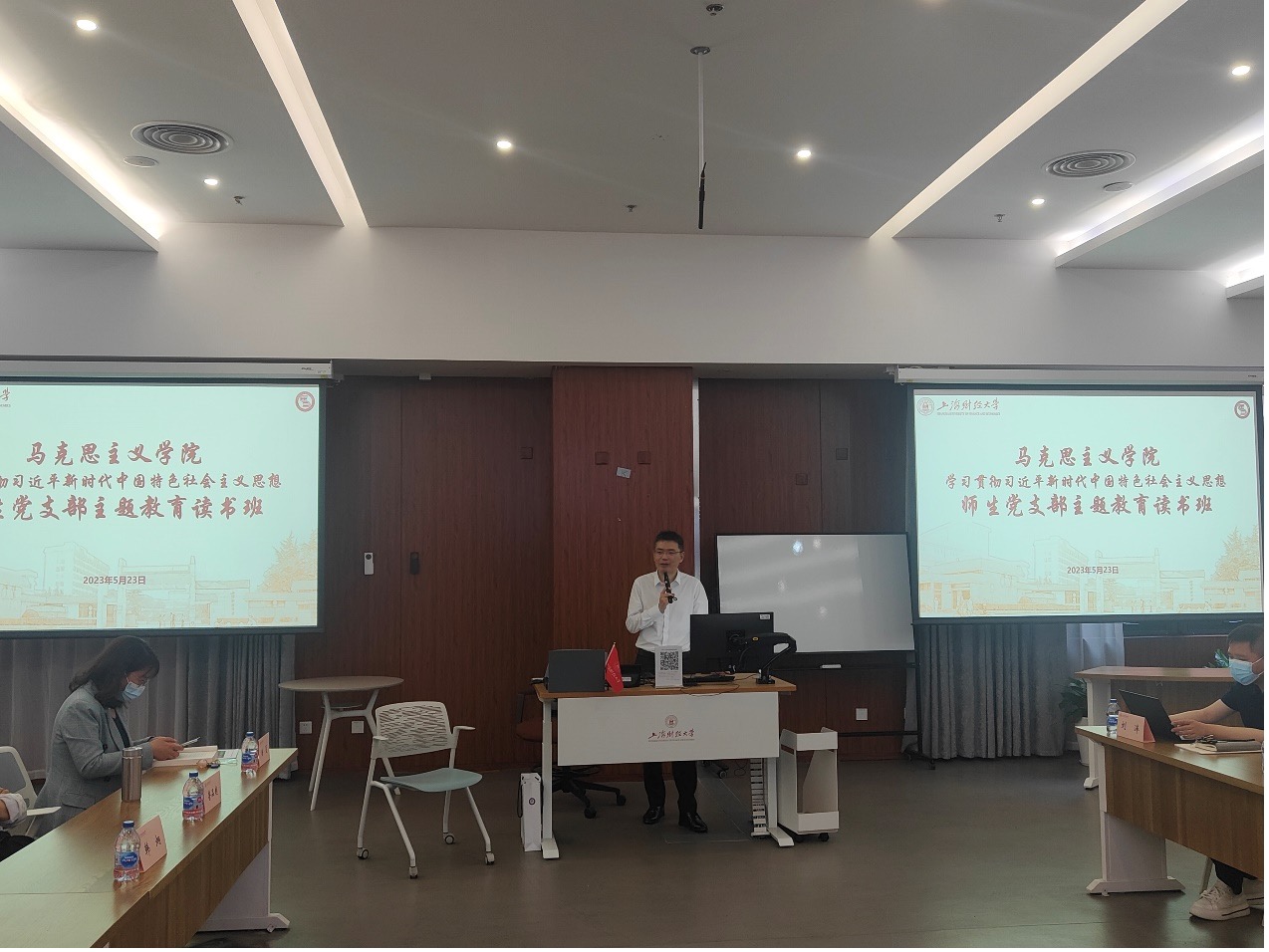 5月23日下午,根据主题教育工作部署,马克思主义学院领导班子主题教育读书班聚焦“中国式现代化”进行专题学习研讨。读书班由学院党委书记曹东勃主持,副院长刘洋领学,教工党支部书记韩炯、陆夏专题交流学习体会,特邀鲁品越教授做“从《资本论》到中国式现代化”专题报告,学院领导班子成员、全院党员师生参与学习。