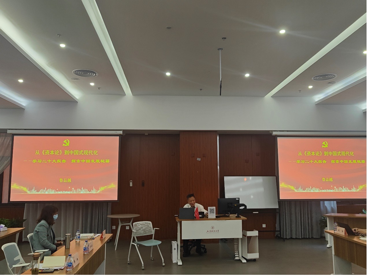 鲁品越教授以“从《资本论》到中国式现代化——学习二十大报告 探索中国发展秘籍”为主题,从中国社会主义道路是对马克思主义的伟大贡献、中国式现代化打破了“现代化=西式化”的迷思、中国式现代化正在解决资本主义现代化无法解决的世界性难题、中国式现代化的实现条件和“两个确立”四个方面深入解读了中国式现代化的丰富内涵。他认为,党的相关文献中具有深厚意蕴,读党的文献应该字斟句酌。首先,就中国社会主义是怎样诞生的这一问题,他通过对跨越论和补课论的批判证明空想社会主义的错误,说明中国的社会主义制度是世界历史与中国历史的必然产物。鲁老师认为,中国不是跨越了资本主义的卡夫丁峡谷,而是经历了人类历史上最艰难的卡夫丁峡谷,从而进入社会主义。其次,他指出了韦伯-帕森斯为代表的西方现代化理论的根本错误,认为资本主义世界的金字塔结构是中等收入陷阱的根本原因,进而说明中国式现代化道路是避免“中等收入陷阱”的唯一正确途径,这也是因为马克思主义行、中国化时代化的马克思主义行。最后,鲁老师结合二十大报告分析了中国式现代化必必然经历的三大阶段。在深刻认识中国式现代化的实现条件和“两个确立”的伟大意义基础上,我们应当对中国式现代化充满信心。