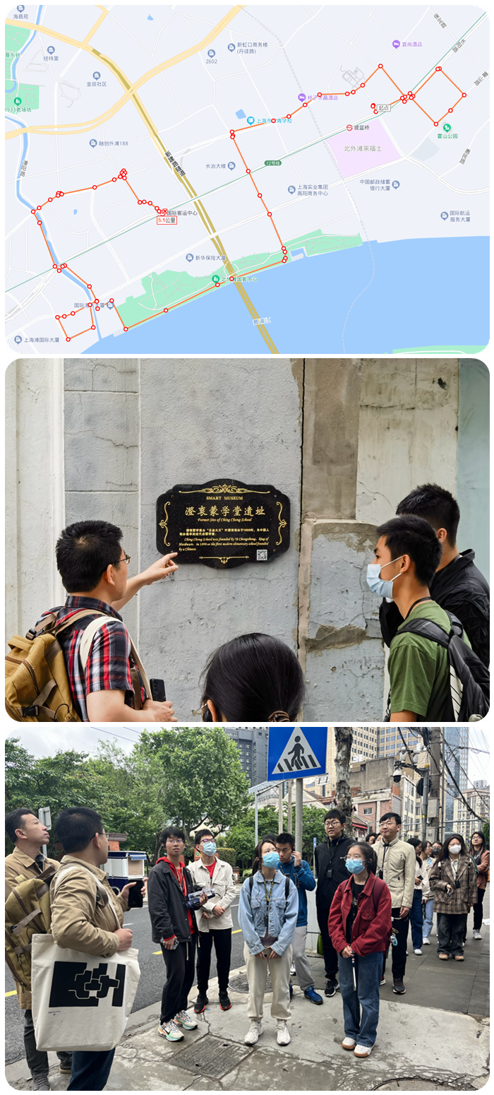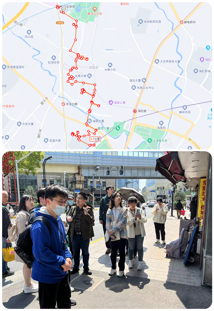 上海近年来兴起了“海派城市考古”文旅活动形式,这一形式很好地契合了习近平总书记对上海城市文化建设的重视,尤其受青年群体欢迎的形式,并被写入了2023年上海市政府工作报告。上海财经大学“习概”教研室从2020年开始即遵循习近平总书记的重要论述精神,将“海派城市考古”的活动形式同实践教学工作相结合,以每学期3-4次、每次15-20人组队的形式,由教师带来同学赴虹口、杨浦等区域开展城市街区漫步和人文史迹寻访,切实感受上海的城市精神和“人民城市”底蕴,提高思政教学实效和学生获得感。本学期的实践教学活动在总结过去几学期经验和同学反馈的基础之上,结合上海城市建设和城市更新的进展情况,进一步优化和拓展了线路方案。
