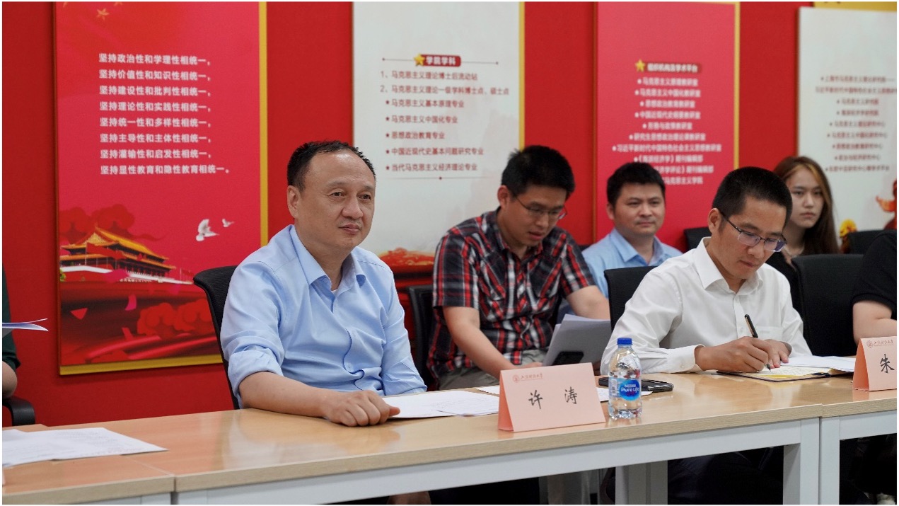 座谈会结束后,许涛书记召集参会教师随即展开进一步调研座谈。他对马克思主义学院领导班子和思政课教师提出三点要求:一是重点提升教学质量,提高学生听课效率,提高学生课堂获得感,实现课堂教学理论与实践的统一;二是要不断学习和提升教学方法,要将每一堂思政课打造成“有情怀”、“有温度”的思政课,要用学生关心的家、国、身边事和学生喜闻乐见的方式来把大道理讲深讲透;三是要不断丰富课堂教学形式,不拘泥于按部就班“满堂灌”式的教学方式,要利用好学校校史馆的资源,同时要将社会实践大课堂与思政课小课堂结合起来。思政课改革创新必须要敢于尝试创新教学方法,可以通过翻转课堂的授课形式,让思政课本中高深的理论知识与鲜活的现实生活充分融合,灵动地呈现在全校同学面前。