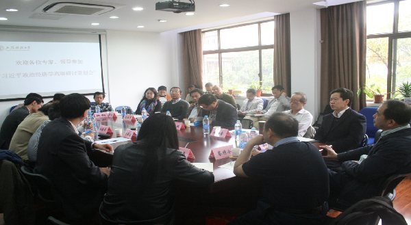 “习近平政治经济学高级研讨策划会”在我校马克思主义学院召开 我校马克思主义学院院长章忠民教授致辞 程恩富教授作重要发言 鲁品越教授作重要发言 4月10日,我校马克思主义学院在红瓦楼306会议室召开了“中国特色社会主义政治经济学--习近平政治经济学”高级研讨策划会。参加会议的代表有:《中国社会科学》副总编孙麾研究员、《哲学研究》副总编鉴传今研究员、复旦大学陈学明教授、上海交通大学陈锡喜教授、《社会科学报》总编段钢研究员、《社会科学》杂志社长胡键研究员等6名外请专家。上海财经大学马克思主义学院院长章忠民教授、程恩富教授、鲁品越教授、冯金华教授、马拥军教授、范宝舟教授刘光锋教授及教研室主任等13名教师和10余博士生等,共30人参会。 会上,马克思主义学院院长章忠民教授发表致辞,就当前学习与研究习近平政治经济学的重要性、紧迫性,以及召开此次研讨会的背景、目的和意义作了说明;并对习近平政治经济学理论特征与的实践运用等问题作了分析。与会专家围绕习近平政治经济学相关问题进行了热烈的讨论。专家们主要围绕习近平政治经济学思想提出的背景、主要内容、创新思想及其理论体系构建等热点难点问题各抒己见,形成了一些共识。 第一,专家们一致认为,习近平政治经济学思想是新一届中央领导集体为积极应对国际国内各种复杂情况、各种新变化、各种新挑战,而提出的治国理政方略,是不断运用马克思主义普遍原理解决中国实际问题的产物,是为解决理论和实践脱节,加强顶层设计,促进中国经济社会持续健康发展的现实需要,是中国特色社会主义政治经济学发展的新阶段。 第二,专家们一致同意,习近平政治经济学思想的总目标是完善和发展中国特色社会主义制度,推进国家治理体系和治理能力现代化;体现在政治上,即强力领导、从严治吏、依法治国;体现在经济上,即尊重规律、守住底线、推动改革。专家们从各个角度阐明习近平政治经济学思想的主要内容,包括“新常态”论、“两手合力”论、“基本经济制度”论、“共同富裕”论、“人民主体”论等。 第三,专家们肯定了“习近平政治经济学”在各个方面取得的巨大成就,同时,也揭示了习近平政治经济学在实践运用中面临的现实境遇及其需要克服的困难。专家们对今后如何构建中国特色社会主义政治经济学理论体系提出了诸多可操作性的建议,包括要坚持中国特色社会主义政治经济学重大原则、坚持马克思劳动价值论、坚持社会主义初级阶段的基本经济制度和分配制度、坚持改革正确方向、坚持解放和发展生产力、坚持以人民中心的发展思想、坚持创新、坚持事实判断和价值判断有机结合,要借鉴西方经济学的相关理论,要充分发挥资本作用,要规避资本唯利是图的劣根性,要在实践中不断发挥马克思主义政治经济学在当代中国的指导作用,要力推中国特色社会主义政治经济学在实践中不断丰富和完善。 整个会议气氛活泼而又有序,发言踊跃,争论热烈,充满智慧与思想力量的碰撞,参会代表对于中国特色社会主义理论发展充满信心并热望为之而努力,更希望将中国特色社会主义理论发展最新成果运用于思想政治理论课的教育教学之中,体现在中国化的马克思主义研究之中。 (会务组供稿) |