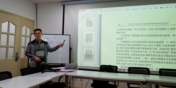 10月15日下午,我院第30期“经典悦读”活动在马克思主义学院楼102会议室举行。马原教研室姜国敏老师领读了列宁《什么是“人民之友”以及他们如何攻击社会民主党人?》。马拥军老师参与了本次活动,并同与会者进行了研讨。