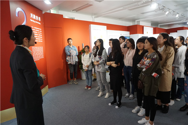 展览中心的讲解员用文字、图片、视频、多媒体演绎和互动体验等形式向同学们生动展现了“十二五”时期上海国际金融中心建设取得的重要进展。在讲解员的引导解说中,同学们参观了展览中心的序厅、海纳百川、开放共享、改革创新、服务实体、筑巢引凤和尾厅,观看了多媒体视频,并与机器人娇娇进行了互动,全面了解了上海在推进金融组织机构体系完善、推进跨境人民币业务、扩大金融对外开放、推进金融改革创新、推动金融产品创新、加强金融基础设施建设、深化国际金融合作交流、加强金融风险管理等多个方面所作的努力和取得的成就。