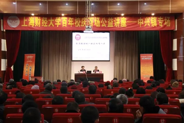 2017-01-09 上海财经大学 1月9日下午,上海财经大学百年校庆百场公益讲座启动仪式暨首场讲座在崇明区中兴镇社区文化中心二楼多功能厅举行。我校党校副校长、马克思主义学院院长章忠民、崇明区中兴镇党委副书记杨冬琴、上海财经大学宣传部副部长孔德民、中兴镇各村居、单位党员、干部、群众等260余人出席了启动仪式。启动仪式由由中兴镇党委副书记杨冬琴主持。