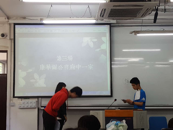 第二个上场的是组二,他们的情景剧《喂,您好》以“职业道德”为主题,涵盖了多个行业的不同职业,有通讯公司的接线员、警察局的警官、银行的保安和柜员、学校的教师等,他们通过自己的一点点努力和奉献,成功阻止了一场诈骗悲剧的发生,最后皆大欢喜。三百六十行,行行出状元,但并非每个人都能成为状元。可另一方面,一个人只要兢兢业业,勤勤恳恳,遵守职业道德,坚守自己的工作岗位,保持为为社会为人民服务的心态,他就是自己行业中的英雄。组二的情景剧充分体现了爱岗敬业、办事公道、服务群众、奉献社会的崇高的职业道德。 最后上场的是组一,他们的主题是“家庭美德”,一个我们习以为常却很少认真思考过的道德层面。组三的同学经过努力,改编了莎士比亚的《李尔王》,凭借精湛的演技俘获了观众的心,在评奖时夺得桂冠。剧的内容主要是讲不列颠国王李尔在年老的时候希望把他的国土分给三位女儿以此让她的女儿能够继续赡养他。大女儿高纳里尔和二女儿里根口若悬河,说自己有多爱父皇也因此获得了李尔王的喜爱,但最后却裁撤了李尔王的侍从背叛了他。三女儿考狄利亚一句话也没有说,却用行动证明了她对父亲的深爱与忠诚。在家庭中,爱应该更多表现在行动上和对责任的履行上。父母应在生活上给子女更多的关爱,而不仅仅是通过金钱来保持与孩子的关系以及拉近与孩子的距离。子女应该遵守孝道,中华传统美德强调德性与互惠,也是通过“孝”来实现的。