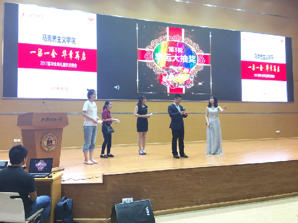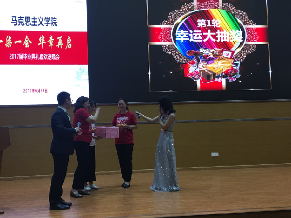 除了精彩的节目以外,本届晚会还安排了三轮游戏抽奖环节,由教师代表抽取幸运号码,中奖的同学获得相应奖品。整场晚会舞台和光影效果优良,氛围其乐融融。