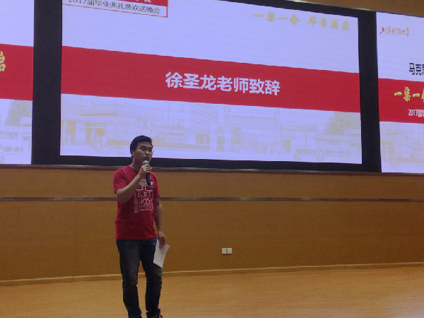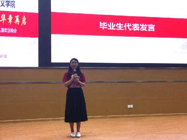 接着,毕业生代表上台发言。2015级制度经济学专业硕士章光伟同学表达了对学院及师长的感激之情,插叙了两段自己亲身经历的小故事,以此说明马克思主义政治经济学的巨大生命力;2015级马克思主义中国化研究专业硕士王佳音表达了对母校的眷恋和祝福之情;2012级当代马克思主义经济理论专业的钱玉波博士感激师长们的悉心培养,祝福马院越来越好;2014级马克思主义中国化专业的王姝博士亦表达了对学院和师长们的感激和诚挚的祝愿,同时呼吁马院大家庭的成员们再接再厉,共同进步和成长。以上发言结束后,2017届毕业生们身着上财毕业生文化衫上台,老师们为毕业生们签名寄语。