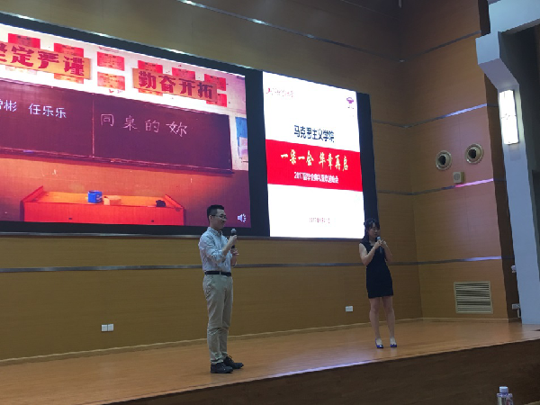 本次晚会由马克思主义学院辅导员郭扬老师统筹组织,由罗振、王佳瑞、毕小乐等同学协调组织,由高晗、袁国辉担纲媒体制作,由蔡飞凤、孙荣臻主持。 供稿:孙荣臻,供图:郭扬 |