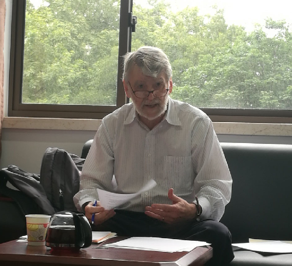 2017年6月23日上午,美国曼荷莲文理学院(MountHolyoke)经济学教授弗雷德·莫斯利(FredMosley)应邀莅临上海财经大学马克思主义学院,在红瓦楼313室做了题为《货币和总体性——<资本论>逻辑的宏观-货币阐释与“转形问题”的终结》的学术报告。报告会由上海财经大学马克思主义学院政治与经济研究中心主任冯金华教授主持,马克思主义学院部分师生参加了此次学术报告会。
