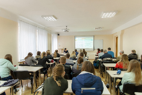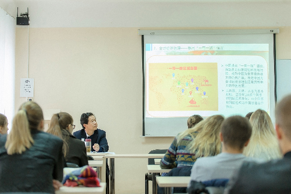 2017年10月9日,上海财经大学马克思主义学院院长章忠民院长在基辅国立经济大学做题为“中国方案推进全球治理”的讲座。基辅国立经济大学的教师代表和学生共50余人,参加了此次讲座。