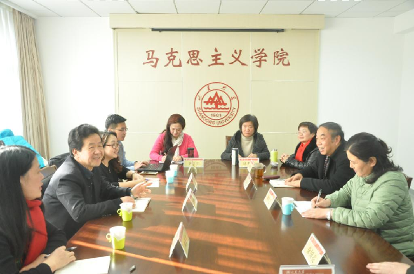 2017年12月4日,上海财经大学马克思主义学院院长章忠民教授带队学习考察山东大学马克思主义学院。 上午,山东大学校长樊丽明教授亲切接见了章忠民院长一行。首先,樊校长动情地回忆了在财大工作的点点滴滴,特别是与马克思主义理论学科发展和马克思主义学院建设的相关情况。樊校长指出,马克思主义学院的成立对于马克思主义理论的发展和思想政治理论课教育教学改革具有非凡的意义,希望上海财经大学马克思主义学院以学院成立为新的起点,以示范马院建设为重要的抓手,把马克思主义理论研究向纵深推进,打造马克思主义理论和思想政治理论课教育教学改革的上财名片。章忠民院长对樊校长的时刻牵挂和重要贡献表示感谢,并汇报了马克思主义学院成立以来、示范马克思主义学院建设以来,学院在学科发展、理论研究、人才队伍建设、思政课教育教学改革等方面取得的成绩,并表示,一定要把马克思主义理论和思政课教育教学改革推向全新的高度。