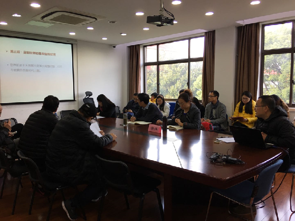 为深入学习贯彻党的十九大精神,加强全院党员思想教育,12月12日,马克思主义学院直属党支部组织全体党员集中学习,并邀请汪堂峰老师作了题为《坚持和平发展道路,推动构建人类命运共同体》的报告,传达、讲解了党的十九大精神。学院直属党支部书记范宝舟参加并主持学习。