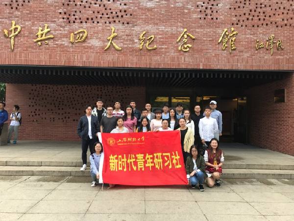 时值五四,恰逢马克思诞辰两百周年,为更好地继承和发扬顽强的革命乐观主义精神,学习宣传革命先烈的英雄事迹,树立和践行社会主义核心价值观,弘扬爱国主义精神,进一步坚定为实现中国梦不懈奋斗的理想信念。新时代青年研习社举办以“游览革命圣地,领略红色文化”为主题的红色革命基地参观专项活动,以缅怀革命先烈为切入点,目的在于了解革命历史,增长革命斗争知识,更好地学习革命精神,传承优秀的民族文化学习革命斗争精神。此次活动主要参观中共一大、二大、四大会址以及中国社会主义青年团中央机关旧址。 5月5号清晨,新青社社员们集合后乘大巴车前往活动地点。第一站,首先到达中共一大旧址;1921年7月23日,中国共产党第一次全国代表大会在上海望志路106号召开,宣告了中国共产党的诞生。中共一大会址纪念馆的基本陈列《未打开短——中国共产党创建历史陈列》内容分为“序厅:起点”、“前赴后继、救亡图存”、“风云际会、相约建党”、“群英汇聚、开天辟地”、“尾声:追梦”五个部分,用文物、图片、艺术品、多媒体、沙盘模型等多种陈列手段再现了中国共产党创建历程,以及中华民族伟大复兴之路在中国共产党领导下开启了新的征程。