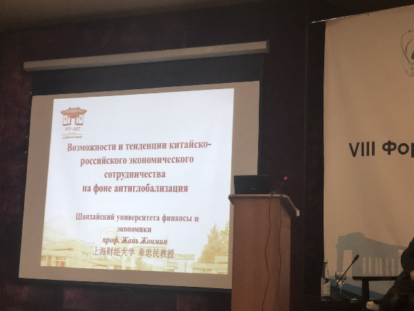 2018年10月22日-26日,上海财经大学马克思主义学院院长章忠民教授率团到俄罗斯圣彼得堡参加由圣彼得堡国立经济大学主办的第八届中俄高级经济论坛。参加会议的主要来自中俄两国知名大学的相关学者,有圣彼得堡国立经济大学、圣彼得堡国立大学、俄罗斯联邦政府财政金融大学、俄罗斯国立高等经济大学、俄罗斯南联邦大学、贝加尔国立大学、中国人民大学、清华大学、上海财经大学、哈尔滨商业大学百余位学者参加了会议。 章忠民院长被邀请与清华大学中俄战略合作研究所所长王奇、俄罗斯地理学会副主席弗拉基米尔•米哈伊诺维奇•拉祖莫夫斯基 、圣彼得堡国立大学教授尼古拉•马拉托维奇•梅热维奇 、圣彼得堡国立经济大学副教授斯坦尼斯拉夫•维塔利耶维奇•巴比奇共同参与圆桌演讲。