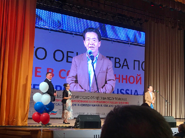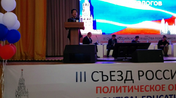 2018年9月10日-12日,上海财经大学马克思主义学院院长章忠民教授一行到莫斯科参加由俄罗斯政治学会和莫斯科大学共同主办的俄罗斯政治学会第三届国际论坛《当代俄罗斯和世界的政治教育》暨莫斯科大学政治学系10周年庆典。 参加会议的有来自俄罗斯、中国、美国、德国、英国、土耳其 、日本、南非、巴西、印度、亚美尼亚、伊朗、哈萨克斯坦、乌克兰、白俄罗斯、塔吉克斯坦、格鲁吉塔、阿塞拜疆等20多个国家的专家学者。会议开幕式邀请到俄罗斯联邦总统办公厅第一副主任谢尔盖.基里延科, 俄罗斯中央选举委员会主席埃拉.帕姆菲洛娃,俄罗斯著名的政治家自由民主党主席日里诺夫斯基等政要参加。开幕式上,俄罗斯联邦总统办公厅第一副主任谢尔盖.基里延科代表普京总统致贺词,祝贺第三届全俄政治学会国际论坛胜利开幕,祝贺莫大政治学系建系10周年。来自俄罗斯其他高校的代表也致贺词表示祝贺。
