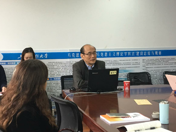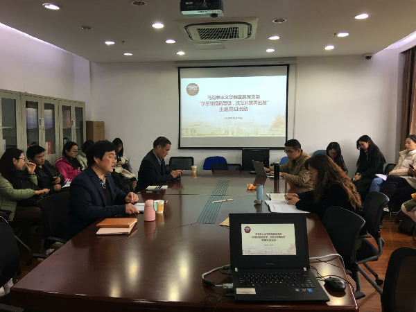 2018年11月20日下午15:00,马克思主义学院直属党支部在马克思主义学院306会议室举行“学思践悟新思想,改革开放再出发”主题党日活动。马克思主义学院直属党支部全体师生党员参加了此次活动。此次活动由党支部书记郝云同志主持。 活动在庄严的《国歌》声下拉开帷幕,郝书记介绍了举办此次主题党日活动的背景,讲到了深入学习习近平总书记在中国进口博览会开幕式的重要讲话精神的重要意义,并隆重介绍了此次主题党日活动的主讲嘉宾——复旦大学经济学院特聘教授孟捷。 孟捷教授为马克思主义学院全体师生党员带来了一场主题为“《资本论》与中国特色社会主义政治经济学”的讲座。孟捷教授围绕《资本论》中的相对剩余价值的生产理论对于构建中国特色社会主义政治经济学的理论价值意义,以马克思主义经典著作为基础,从《资本论》论市场经济的“历史合理性”,相对剩余价值生产理论之于社会主义市场经济的适用性,剩余价值的两重性,按劳分配与按要素分配,相对剩余价值生产的三个条件和积累率与利润率的背离等方面进行了深入阐述,旁征博引,图文并茂,站在学术前沿进行学术争鸣,关注社会热点理论议题,深入浅出,既有理论深度,又有历史长度,为马克思主义学院全体师生党员带来了一场难得的学术盛宴。