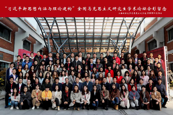 2018年11月24日,由上海财经大学马克思主义学院与《海派经济学》编辑部联合主办的“习近平新思想内涵与理论建构”全国马克思主义研究生学术论坛在上海财经大学胜利召开。 论坛特邀请了中国社会科学院学部主席团成员程恩富教授、解放日报社党委副书记周智强,上海财经大学马克思主义学院院长章忠民教授,上海财经大学资深教授鲁品越教授,上海财经大学马克思主义学院书记郝云教授,国防大学政治学院孙力教授,上海理工大学马克思主义学院院长金瑶梅教授,上海政法学院科研处处长张远新教授,湖南省社科院中特中心常务副主任唐励、《思想政治理论教育》执行编辑,天津师范大学马克思主义学院刘慧副教授、上海财经大学马克思主义学院副院长刘光峰教授等其专家。同时,来自中国社会科学院、中共中央党校、北京大学、清华大学、武汉大学、复旦大学、浙江大学、上海交通大学、中国人民大学、吉林大学、华中科技大学、南开大学、中国科技大学、厦门大学、同济大学、安徽大学、中央财经大学、华东师范大学、国防大学政治学院、南京师范大学、东北财经大学、新疆师范大学、西南财经大学等全国100余所高校和科研机构的研究生共近130多人参加了本次论坛。