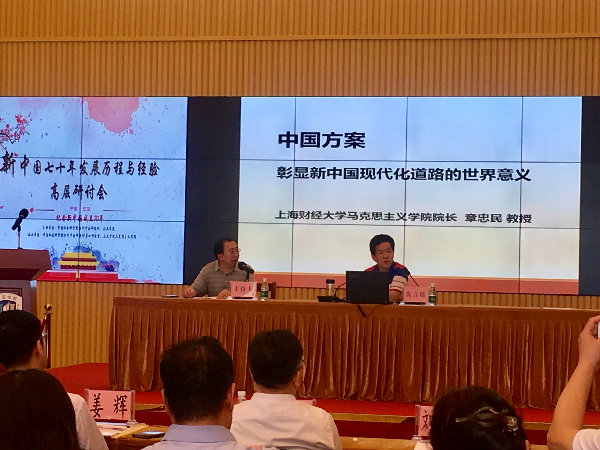 章忠民教授强调,回顾新中国70年所走过的道路,总结其中的经验与教训,尤其是要把握、提炼内在的发展规律尤为重要,更为关键的是将这种宝贵的经验、教训和规律用以中国当下的发展,为创造更加辉煌的未来做准备。他着重强调了以下几点问题:第一,在现代化追梦过程中创造辉煌和奇迹并形成中国方案。 在世界历史现代化进程发展中,中国不断加快现代化步伐并通过赶超创造了人类现代化建设的奇迹。我们要深刻总结70年来中共三代领导人对于现代化的追求、注解并形成中国方案的轨迹,将新中国现代化的成功经验推向世界。第二,运用中国方案拓展世界各国现代化建设选择路径。继西方现代化与苏联模式现代化之后,中国现代化给人类现代化注入新的活力,在实践层面将西方现代化所仰仗的“无形之手”与苏联现代化所倚重的“有形之手”相结合,走出一条成功的中国道路;在理论层面丰富和发展了马克思主义中国化,形成了中国特色社会主义的思想理论体系、道路、制度和社会主义文化。中国方案尝试解决世界现代化进程当中所遇到的瓶颈问题,如世界经济与复苏乏力与贸易保护主义两大经济难题,重构反(逆)全球化浪潮下的失灵、失序、失效的全球治理体系,在共商、共建、共赢、共享原则下,构建人类命运共同体等。第三,要在人类现代化进程视野中总结新中国现代化的经验与规律,科学分析现代化的标准、目的、内生动力、发展过程以及最后所要达到的结果。以此论证并彰显中国方案引领人类现代化发展正确方向的世界意义之关键所在,为曾经备受欺凌的弱国、小国提供了发奋图强的样板,为发展中国家既要获得社会经济的蓬勃发展,又要保持国家主权独立提供了直接借鉴,从让现代化说中国话到让马克思说中国话,破除现代化的迷信与确立现代化的希望。