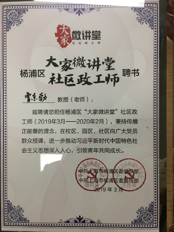 会上,邵红光书记还向我院曹东勃教授颁发了社区政工师的聘书。 通过本次党建联建交流,双方进一步深化认识、凝聚共识,今后将通过进一步深入开展基层调研实践,加强学习,深化联动,共同推进基层党建工作。 (供稿:戴媛媛,供图:戴媛媛) |