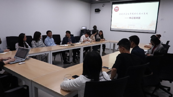 2019年5月14日下午,马克思主义学院在科学实验大楼1326会议室举办“书记面对面”活动,党总支书记郝云教授、副院长刘光峰教授、院长助理刘晓音等教师与十余名学生代表,共同交流探讨了关于学生学业成长与个人发展等方面的问题。