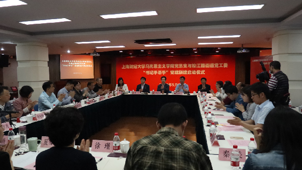 2019年5月31日下午,上海财经大学马克思主义学院党总支与控江路街道党工委“书记手牵手”党建联建工作启动仪式于控江路街道办事处六楼会议室成功举行。马克思主义学院院长章忠民、党总支书记郝云,控江路街道党工委书记、人大工委主任陆志平,以及控江路街道党工委副书记徐佳等出席启动仪式。上海财经大学马克思主义学院各党支部负责人、青年教师代表、学生代表,以及控江路街道部分居民区党组织负责人、社区党员干部代表参加了本次活动。