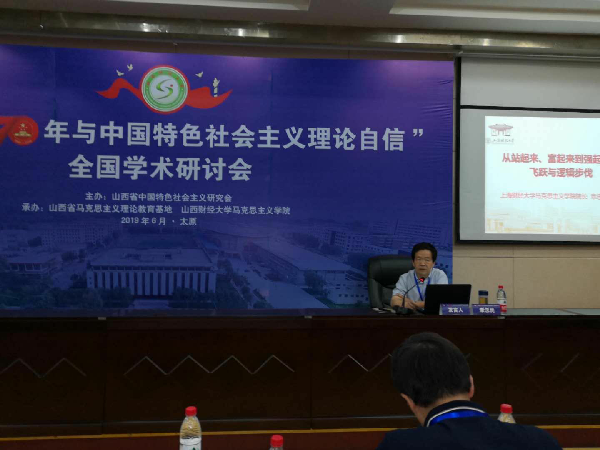 “新中国70年与中国特色社会主义理论自信”全国学术研讨会成功举办。为深入学习贯彻落实党的十九大精神和习近平新时代中国特色社会主义思想,深刻总结新中国70年历史经验,深入分析中国特色社会主义道路开辟的历史进程和重大意义,坚定中国特色社会主义理论自信,加强省内外中国特色社会主义理论研究界的交流,由山西省中国特色社会主义研究会主办,山西省马克思主义理论教育基地、山西财经大学马克思主义学院承办的“新中国70年与中国特色社会主义理论自信”全国学术研讨会于6月23日在山西太原召开。