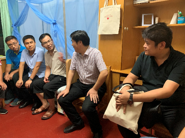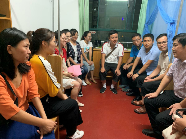 2019年9月6日晚,马克思主义学院一行在郝云书记带领下来到新生宿舍看望2019级全体新生,新生班主任周杰老师、研究生辅导员郭扬老师以及2018级学生代表一同参加了看望活动。到了宁远楼男生宿舍,老师对新生的入住情况、思想状态、实际困难等进行了询问和交流,同时也介绍了学院的基本情况。在走访中了解到新生同学刚刚结束了一天的报到,他们对加入马院这个大家庭感到十分激动和兴奋,并对参与报到接待的老师和学长们表示感谢!新生班主任周杰老师向大家回忆了自己的研究生生活的心得和经验,寝室内欢声笑语,气氛和乐融融。同时,郭扬老师作为辅导员也叮嘱大家一定要牢记寝室里的规章制度,有生活或者学习上的问题都可以与学院的老师和学长学姐们交流。