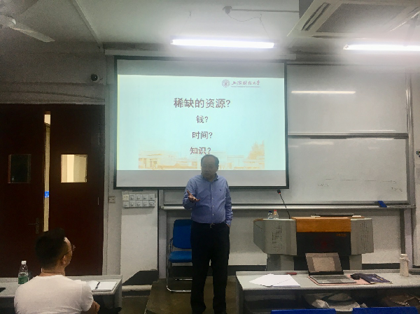 为进一步落实立德树人根本任务,为了推动思想政治理论课改革创新,不断增强思政课的思想性、理论性和亲和力、针对性,为提升大学生用经济学视角观察问题、分析问题和解决问题的能力,9月24日晚,上海财经大学《经济中国》课程第三讲“同学们身边的经济学”由我校党委副书记朱鸣雄教授在二教101教室主讲。