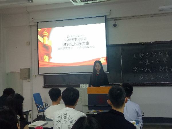 本次大会由马克思主义学院研究生会副主席郭哲婧主持。大会第一部分,研会主席班弘毅和新青社社长作了上一学年研会和新青社的工作报告。班弘毅学长回顾了包括“奥林匹克营”、毕业晚会等品牌活动的开展情况,并代表研会全体成员衷心祝愿下一届研会能够秉承传统,求真务实,与时俱进,开拓创新,扎实工作,服务师生,起到丰富校园文化的作用,团结引领马院全体研究生,共创马院研究生工作辉煌的明天。王跃学长则向大家介绍了新青社的背景与活动开展情况,并希望新的学生干部可以不忘初心,牢记使命,继续带领新青社社员在新的历史起点上为马院创造全新的辉煌。