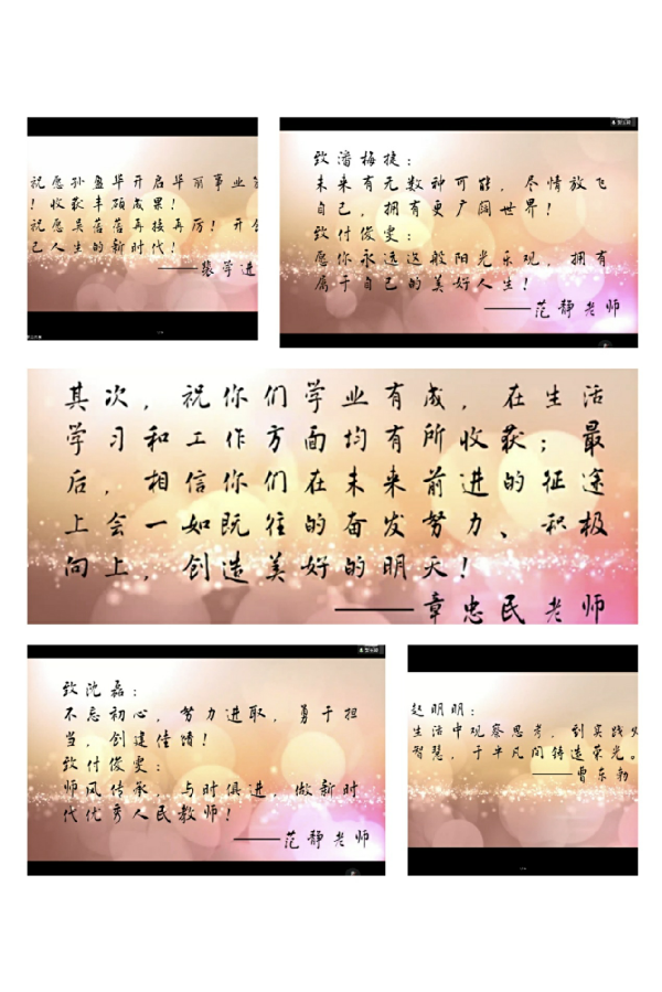 最后,大家一同观看了各位导师对自己学生的寄语。两年的时间,老师教给很多学习和为人处世知识,在即将挥手告别走上人生新阶段之际的时候,别忘了带上老师对你们的殷切祝福和真诚告诫。