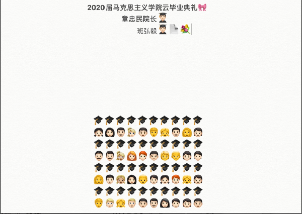 第四部分,院长致辞。章院长着眼现实,向广大毕业生讲述了现实的挑战。指出这场特殊时期的特殊的线上毕业,是在全世界抗击疫情的背景下进行的。我们中国之所以在世界中成为这场战役佼佼者,就是因为社会主义制度的优越性,中国共产党的领导,中华民族的努力,马克思主义与中国特色社会主义的结合,我们的专业选择适逢其时。因此,每一个马院人,都应把我们在上海财经大学马院学到的知识做到最好的定格。祝福在以后的工作中每位同学都会取得好的成就,祝愿每位同学都有自己美好的明天。
