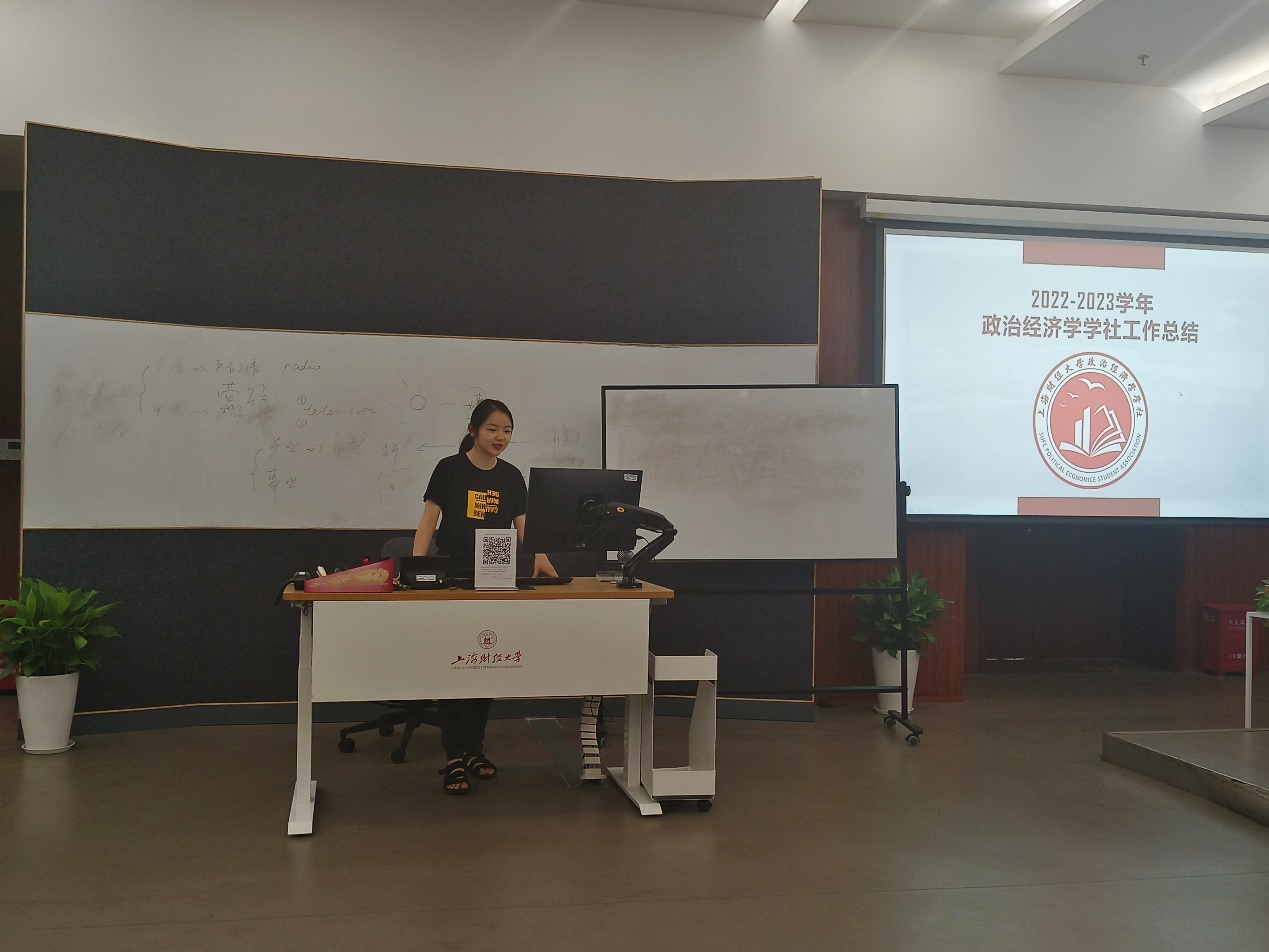 政经社社长侯婉月同学对政经社针对社会热点问题所举行的活动作出总结报告,包括热点讨论、学术讲座等,向大家展示了政经社的风貌。新青社副社长张鑫从三个方面介绍了新青社围绕着党的二十大所举行的活动,包括线上线下相结合的学术沙龙、参观中共一大会址的专项活动等,并鼓励大家关注新鲜事,奋进新征程。