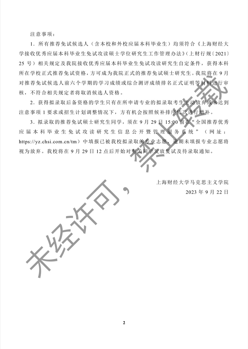 上海财经大学马克思主义学院2024年校外推荐免试硕士研究生拟录取及候补资格名单