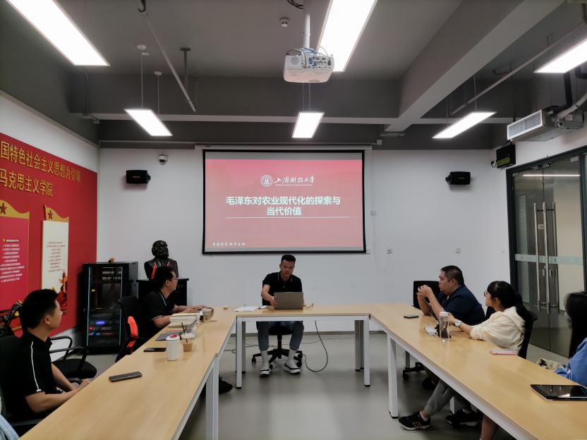 2023年9月26日下午,上海财经大学马克思主义学院新时代青年研习社于科研实验大楼1326室举办“青春正当时,聚力现代化”系列活动之“青”读经典,溯源现代化之根——纪念毛泽东同志诞辰130周年主题读书会。本次活动邀请到上海财经大学马克思主义学院博士研究生王恩祥、李永辉和屈甲茂三位同学分享毛泽东经典著作与中国式现代化之间的联系,本次活动由新时代青年研习社社长赵静静主持。