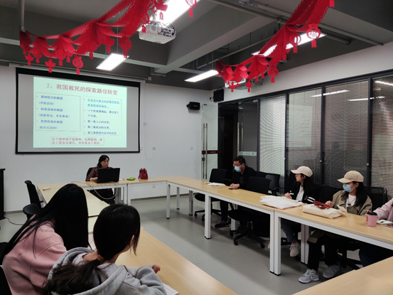 4月24日下午新青社于实验楼1326教室举办以“百年共进:马克思主义在中国的发展”为题的“逐梦百年、奋斗不息”专题讲座,由上海大学马克思主义学院申小翠教授主讲,新青社社员参与。讲座针对毛泽东思想、邓小平理论、三个代表、科学发展观、习近平新时代中国特色社会主义思想和三次伟大飞跃进行了依次讲解。