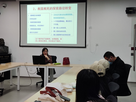 首先,申小翠教授简要讲述了毛泽东思想、邓小平理论、三个代表、科学发展观和习近平新时代中国特色社会主义思想的发展背景及不同思想内核,讲述了马克思主义在中国不同发展阶段的具体体现。