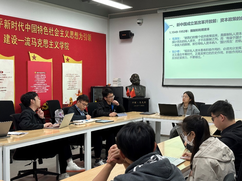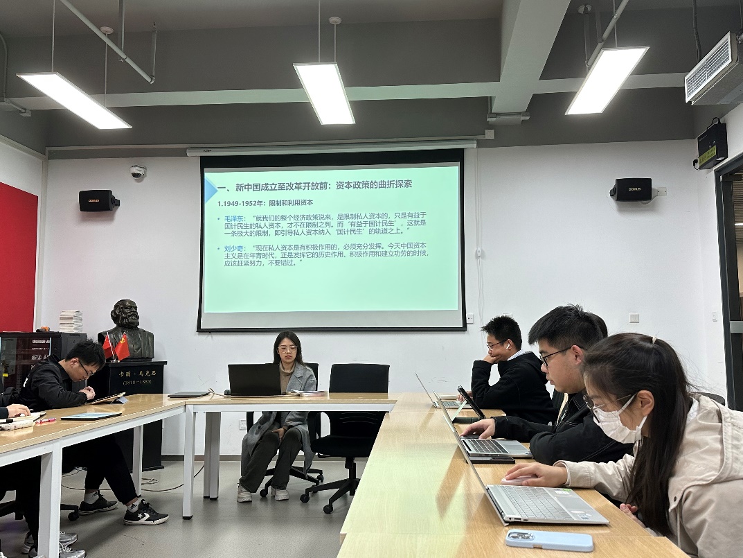 讲座伊始,吴晓雅学姐首先对新中国成立以来党和国家的资本政策的演进和对资本概念认识的不断深化进行了详细介绍,从改革开放前国家对资本的限制和利用、改造私人资本,到改革开放之后利用资本发展经济,我们对资本的认识也逐渐明确清晰。