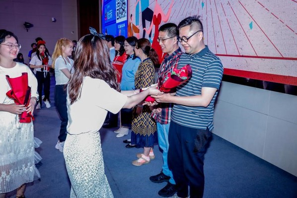 “师恩难忘”篇章中,杨夏清同学竹笛独奏《卷珠帘》,宋锐、高哲两位同学饱含深情进行朗诵,表达了对母校的感谢和对未来的期待。答谢导师环节,毕业生逐一上台为自己的导师献花,并与老师们拥抱、合影。