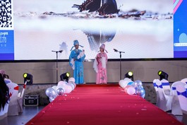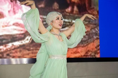 第二篇章“异域风情”中,日语、韩语、俄语纷纷登场。章超娉同学以优美的舞姿展示了阿拉伯舞蹈《Muwashahat》的别样风情。刘薇同学的韩语歌曲《ALOHA》,温柔优雅、令人着迷。孙昊鹏、郭玉琦、吕佳文三位同学为大家带来了动漫日语歌曲串烧,全场师生热烈互动,掀起晚会高潮!刘晓音老师以精湛的俄语功底,展示了俄语歌曲《Этопростосон》的独特风情。冯金华老师做了精炼发言,希望大家离开学校之后,要继续努力,好好学习,勤奋工作。