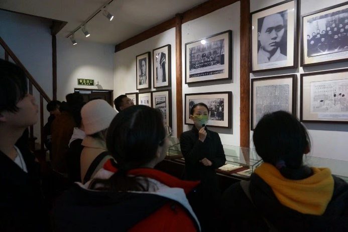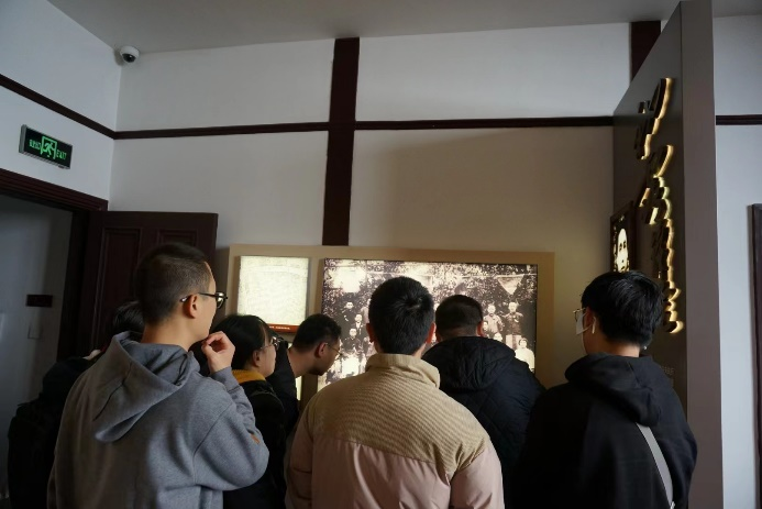 第一站,党员同志们来到了位于静安区的安义路毛泽东寓所旧址,1920年5月,毛泽东同志来沪领导湖南在沪学生驱逐湖南军阀张敬尧的斗争期间居住于此。一组组珍贵的历史照片、一件件朴素的革命实物、一幕幕辉煌的战斗场景,带领着青年党员们重回那段烽火岁月,唤醒了青年党员们的昂扬斗志。