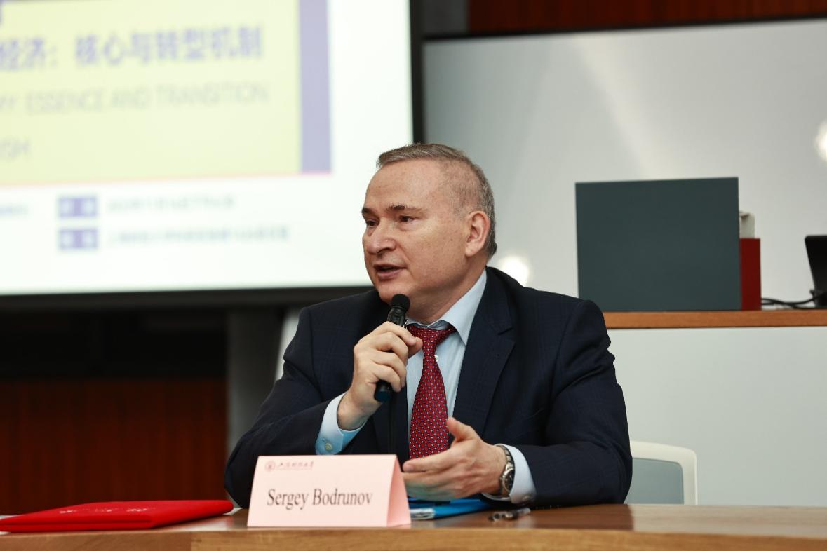 2023年11月17日下午,俄罗斯自由经济协会主席、国际经济学家联盟主席、S.Y. Witte新工业发展研究院院长、俄罗斯科学院通讯院士,经济学博士,俄罗斯经济再工业化战略研究者和制定者、第二代新工业社会概念和智慧型经济学(Noonomics)理论创始人谢尔盖·博德鲁诺夫(Sergey Bodrunov)教授受邀为我校马克思主义学院、经济学院师生作了题为“智慧型经济:核心与转型机制(Noonomy: Essence and Transition Mechanism)”的学术报告。