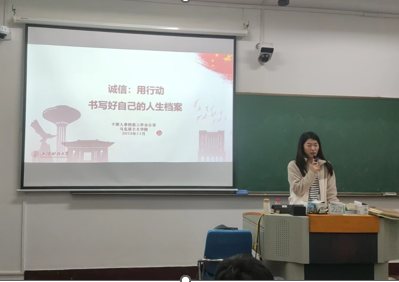 “档案诚信教育”主题课程主要是引导学生深刻体悟人事档案所蕴含的诚信价值,用真实的人事档案书写人生档案的“纯度”、“亮度”和“厚度”,进而更深入地体会诚信价值观的重要性,更好地发挥社会主义核心价值观的引领作用。在课堂上,四位老师充分发挥各自的专业知识特长,为学生全面讲解了人事档案的基本知识、重要作用、管理要求以及转递办法等内容,重点阐述了人事档案所蕴含的诚信价值。